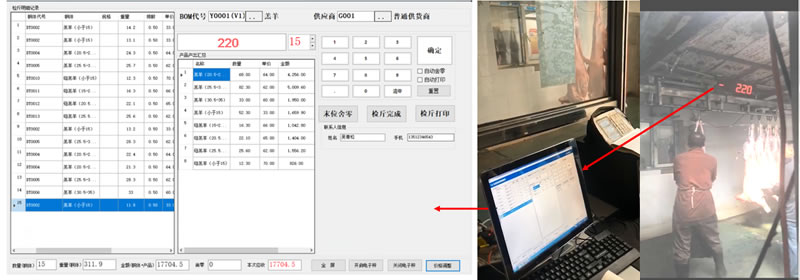 连接屠宰设备自动获取胴体称重数据,核算级别、按照价格政策取价生成检斤核价单。