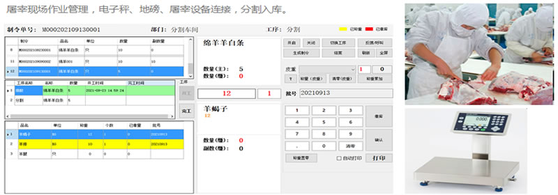 系统连接地磅,称重自动登记分割鲜品的生产量;系统连接地磅,称重自动生成鲜品的缴库单。