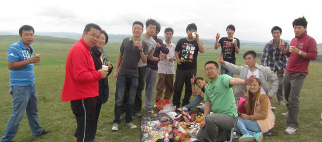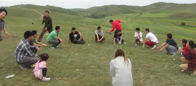周六早上7点,参加本次文化活动的员工在公司楼下集结,驱车5个小时,来到风景秀丽的河北丰宁京北第一草原之称的坝上草原,大家要在这里过一个以“草原之旅、激情之夜”为主题的文化活动。本次活动为庆祝公司研发员工经过一段时间的辛苦工作,实现L9-ERP和AOC协同商务平台V5.0.7的发版任务,八月的坝上草原,艳阳高照,晴空万里,绿草葱葱,一望无际,大家情绪高涨,心情大好。大家一改技术工作的严谨作风,各自绽放搞笑天赋,发扬公司倡导的娱乐精神,气氛HI到沸点.