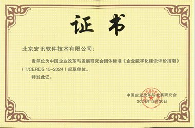 宏讯软件入选中国企业改革与发展研究会《企业数字化建设评价指南》团体标准起草单位。