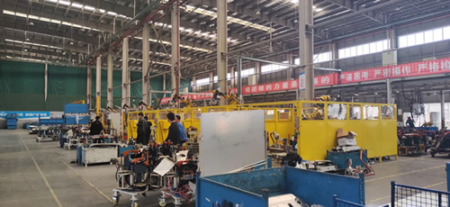 自动化机器人焊接车间,对冲压产品进行焊接融合,送达后序进行整车装配。
